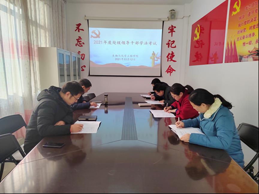 为深入学习贯彻习近平法治思想,全面贯彻落实党的十九大及其历次全会精神,根据《关于完善国家工作人员学法用法述法考法制度的意见》(宛司〔2017〕42号)和中共南阳市委全面依法治市委员会安排部署,2021年11月3日-11月15日,我校举行2021年度处级领导干部学法用法考试,我校163名处级干部参加。