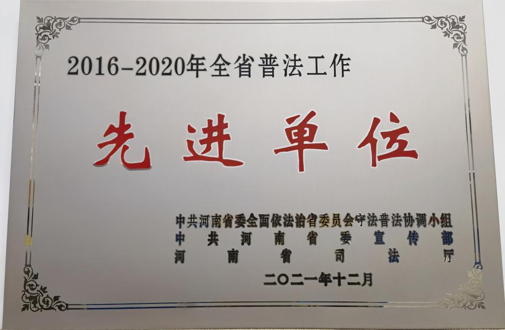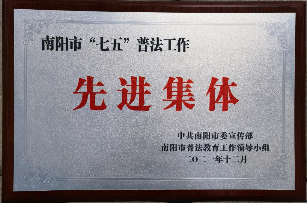 本网讯(特约记者/王冷)日前,中共河南省委全面依法治省委员会守法普法协调小组、中共河南省委宣传部、河南省司法厅联合发文,对2016-2020年全省普法工作先进单位和个人进行表彰,我校荣获“全省普法工作先进单位”称号。这是我校荣获全省“七五”普法工作中期先进单位称号以来,普法工作取得的又一荣誉。同时,我校获评南阳市“七五”普法工作先进集体,依法治校办公室江山川、王冷同志荣获先进个人称号。