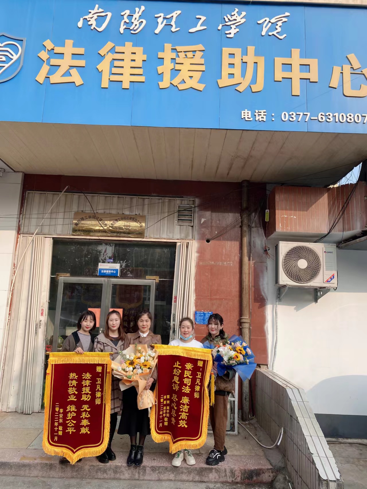 2022年11月,宛城区居民雷爽、李安东、姜露、高平阳、龚苹苹接到了宛城区法院执行局的工资执行款,该劳动争议案件历经一年,通过劳动仲裁、一审、二审、发回重审、执行,法律援助律师接受指派后,认真详细了解案情,调查取证,并与当事人充分沟通。在法援律师的不懈努力下,最终胜诉并执行到位,切实维护了弱势群体的合法权益。受援人对案件结果表示十分满意,将两面“法律援助、无私奉献、热情敬业、维护公平”、“亲民司法、廉洁高效、止纷息诉、尽心尽责”的锦旗送至我校法律援助中心窗口,对法律援助中心提供的法律援助表示真挚的感谢。