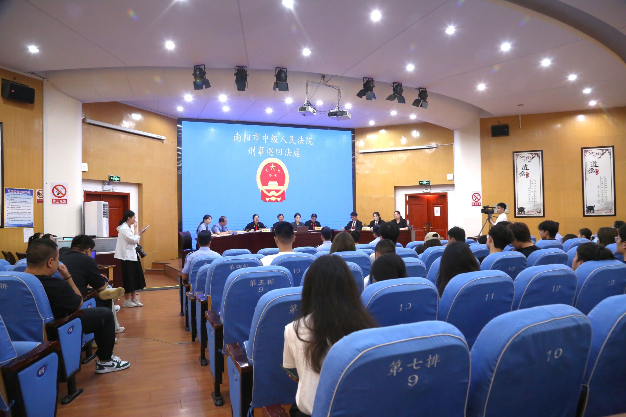 为深入贯彻落实习近平法治思想,探索大学生普法宣传教育和培养法治人才的新路径,扎实推进校园法治宣传工作,6月25日上午,河南省南阳市中级人民法院刑事审判第一庭来到南阳理工学院第二学术报告厅,举办了一场别开生面的巡回审判活动,对上诉人王某、张某方贩卖毒品、诈骗一案进行二审公开开庭审理,范蠡商学院等200余名师生代表“沉浸式”旁听了本案审理全过程,“零距离”接受法治教育。