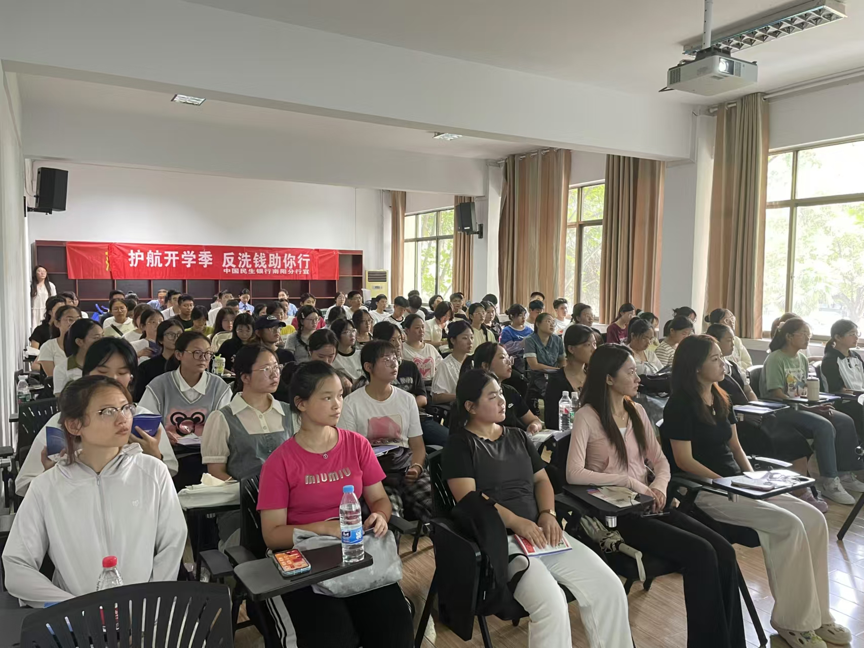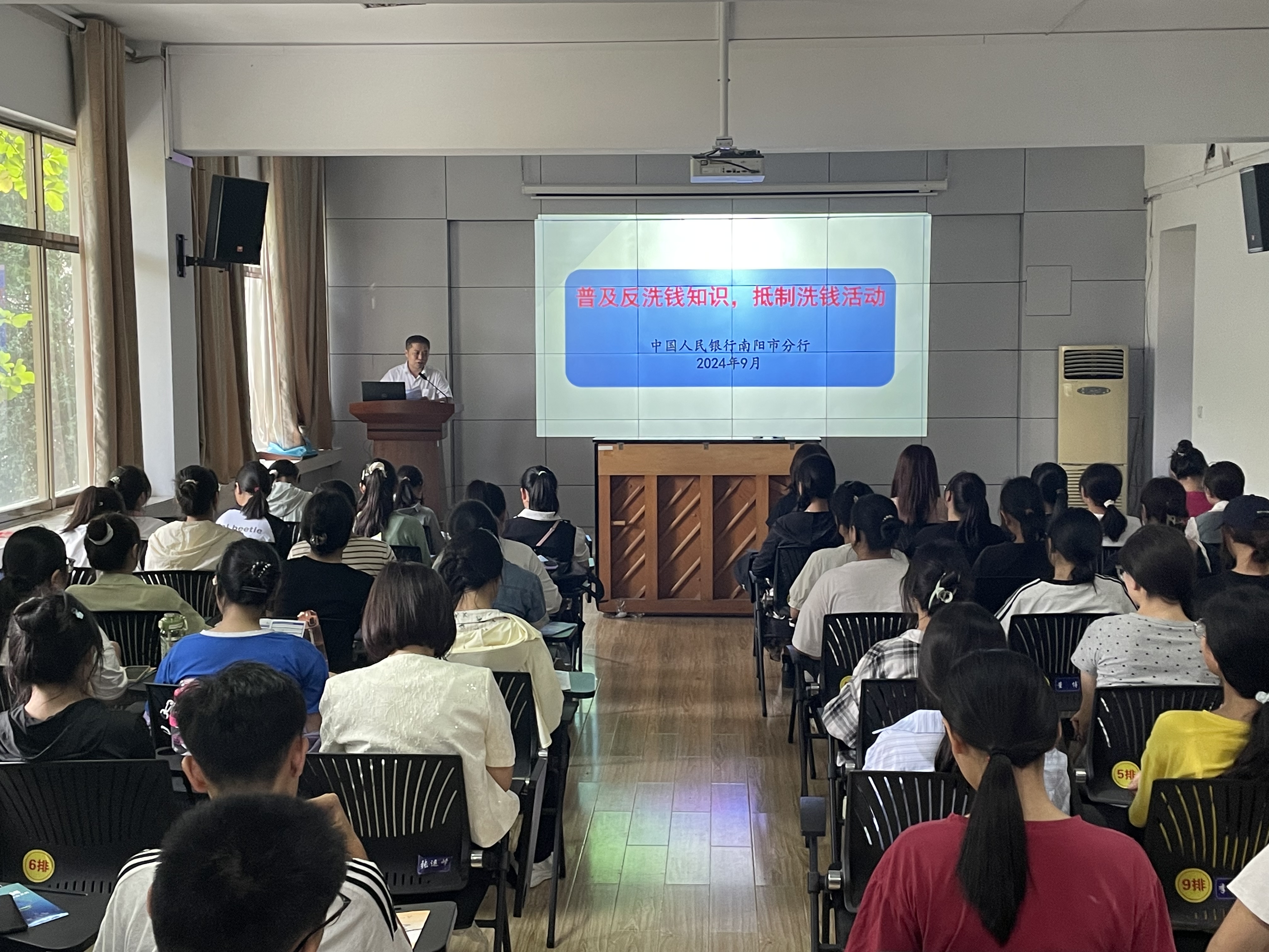 为进一步普及反诈、反洗钱法律法规知识,推进平安校园建设,增强当代大学生反洗钱意识及自我保护能力,9月10日下午,中国人民银行南阳市分行联合南阳市检察院、中国民生银行南阳分行到南阳理工学院范蠡商学院开展“护航开学季 反洗钱祝你行”为主题的反诈、反洗钱知识进课堂普法宣传活动。
